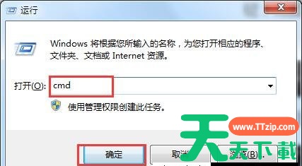 1、在键盘上按下组合快捷键“Win+R”打开运行窗口,输入“cmd”命令之后,点击确定按钮,如下图所示: