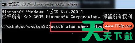 2、在打开的命令提示符窗口中输入“netsh wlan show drives”并回车键确定,如下图所示: