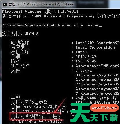 Win7旗舰版查看无线网卡是否“支持的承载网络”的方法?