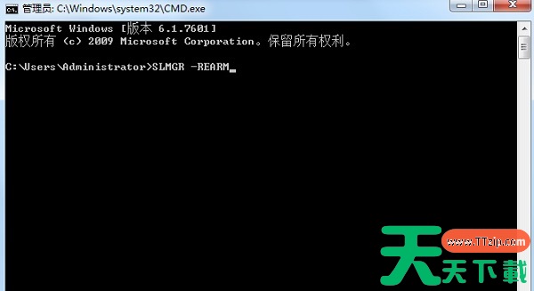 2、在弹出的窗口中输入“SLMGR -REARM”,注意中间有一个空格,不要漏了。