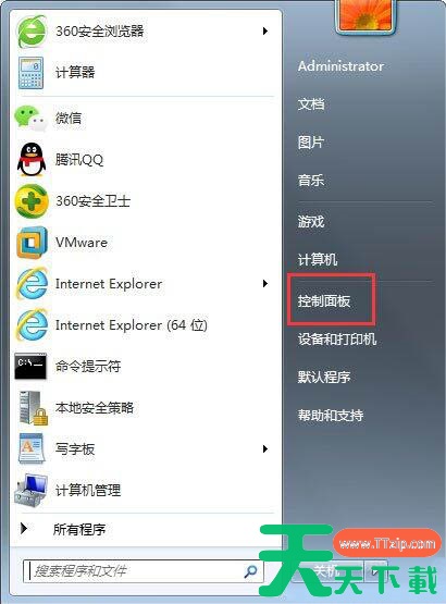 1、开始菜单打开控制面板。