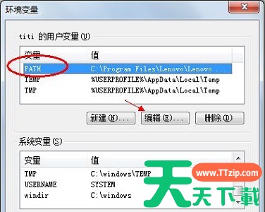 5、选中需要更改的环境变量,点击“编辑”