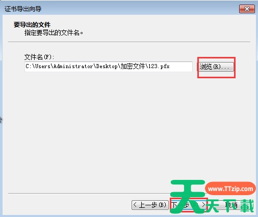 10、点击浏览,选择指定要导出文件名的所在位置,选择完毕点击“下一步”。