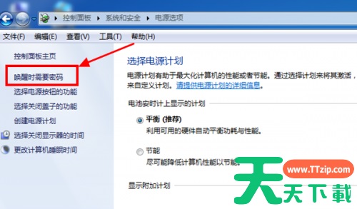 4、最后进入到电源选项之后,在界面左上角选择“唤醒时需要密码”,如图。
