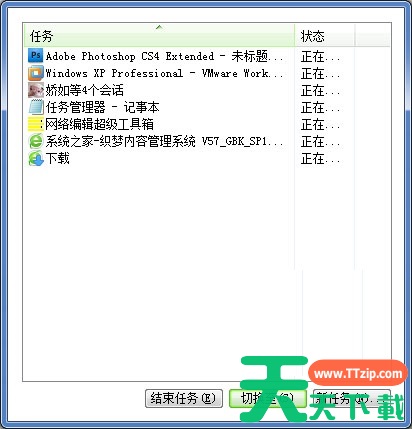 最近有看官和天天下载Ttzip反映,在使用Win7的过程中突然发现任务管理器少了一半(如图所示)菜单栏上的东西全部不见了,点哪里也恢复不了咋造?今天天天下载Ttzip就介绍给各位看官一个完美的解决方法。