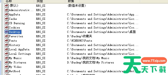 3、然后我们在页面上找到名为“Desktop”的键值并且将其修改为你想要保存的路径,然后重启电脑就能生效了。