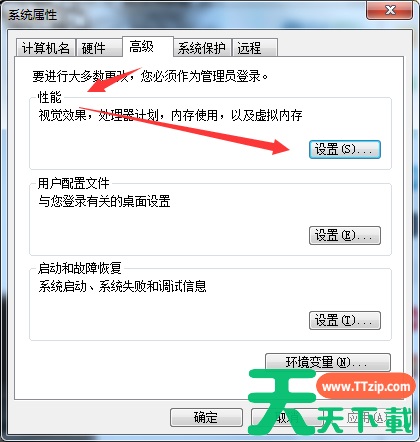 3、在系统属性页面中点击性能下面的设置。