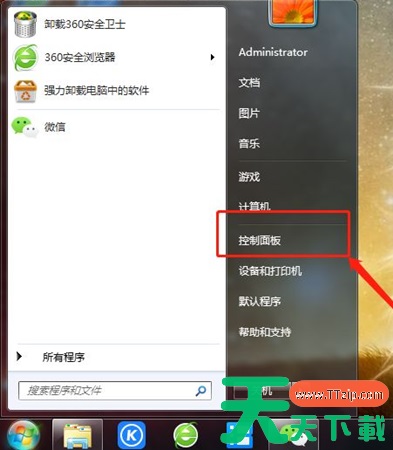 1、点击电脑左下方的‘开始’按钮,点击‘控制面板’打开。