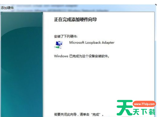 7、提示成功安装硬件,设置向导完成,点击完成,虚拟网卡就创建好了,随后我们可以在网上邻居查看验证。