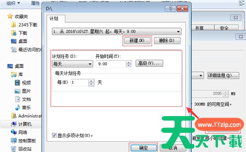 4、然后打开计划,点击新建,然后对下面的时间进行设置(设置自动备份时间)。