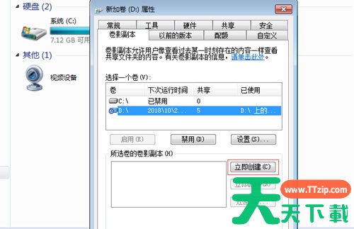 2、然后在卷影副本中,我们选择这个磁盘,进行设置。