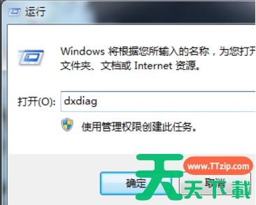 2、然后输入命令【dxdiag】并确定启动DirectX诊断工具。