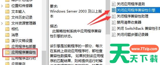 3、找到右侧的“关闭应用程序兼容性引擎和关闭程序兼容性助理”启用他们。