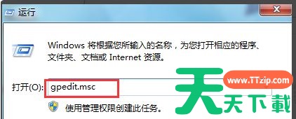 2、在弹出的运行对话框中输入组策略命令“gpedit.msc”并点击确定。