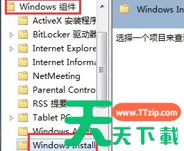 4、在管理模板选项下找到Windows组件,并在该选项找到Windows Installer子项点击打开。