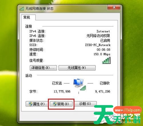 2、如果诊断不管用的话我们不妨试试另一种方法,禁用在启用。也就是停止现在正在运行的网卡然后在重新启动,不少朋友这么做了之后这个问题就解决了,至于其中原理天天下载Ttzip也无法解释的很清楚,但是毕竟是一种方法,遇到这个问题不妨试试吧。