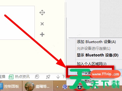3、或者,在电脑主界面上在右下角的任务栏中找到蓝牙图标,鼠标右键点击,选择“打开设置”。