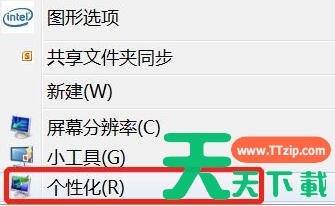 1、首先点击桌面空白处,在下拉菜单底部找到“个性化”