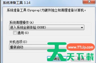 3、出现系统准备工具,在系统清理操作中选择“进入系统全新体验(OOBE)”,然后点击确定。