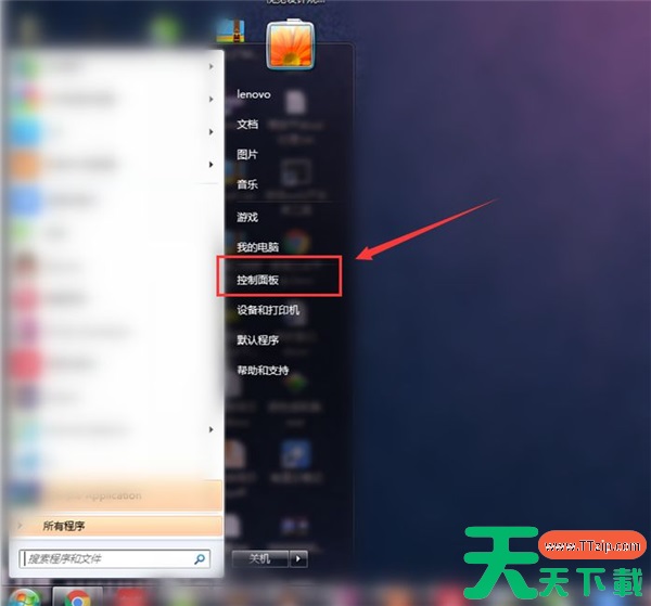 2、进入【开始】在页面的上半部分找到【控制面板】选项,点击进入到控制面板详情页面。