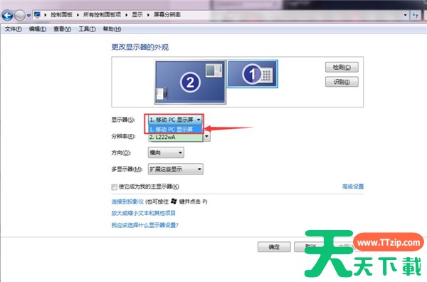 4、进入到【显示】--【屏幕分辨率】中进行设置,首先将【显示器】选项设置为“1、移动PC显示器”。