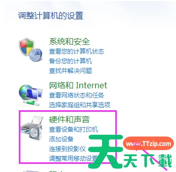 1、在显示器连接好之后,打开“控制面板”并选择“硬件和声音”。
