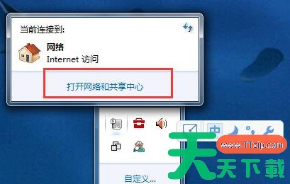 1、点击右下角电脑网络图标,点击【打开网络和共享中心】。