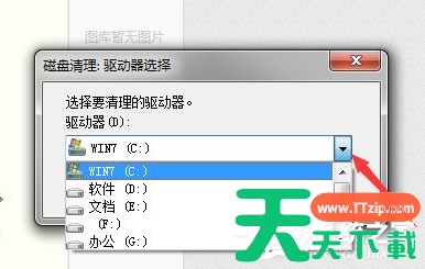 4、点击后打开一个小窗口,点击下拉箭头就可以选择你要清理哪个磁盘了。