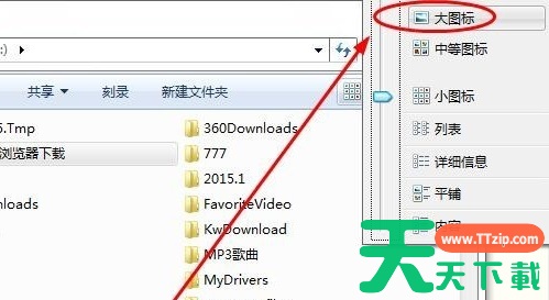 2、这里可以选中大图标小图标,以及列表平铺等不同的显示方法,这里以“大图标”为例。