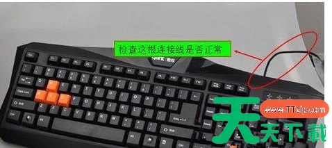 1、这里主要是检查一下键盘本身有没有问题,看看数据连接线是否正常,然后再看看接口是否松动,重新插拔一下接口。