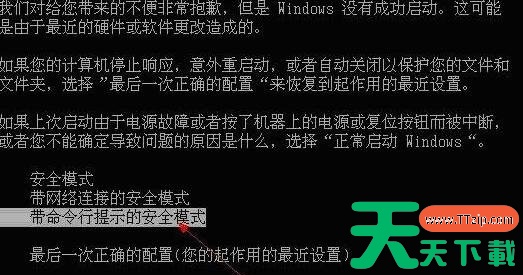 1、重新开机或电脑重启的过程中,也就是在出现品牌Logo的时候,连续按F8进入安全模式,选择带命令行的安全模式。