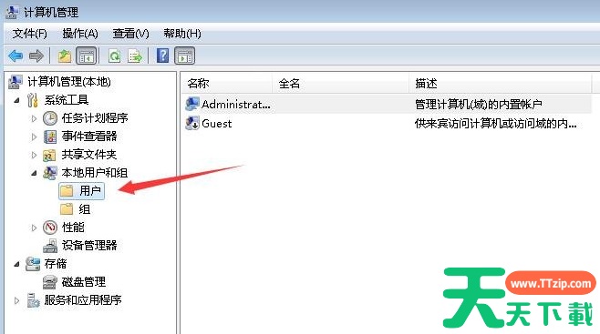 3、计算机管理窗口,点击本地用户和组下的用户。