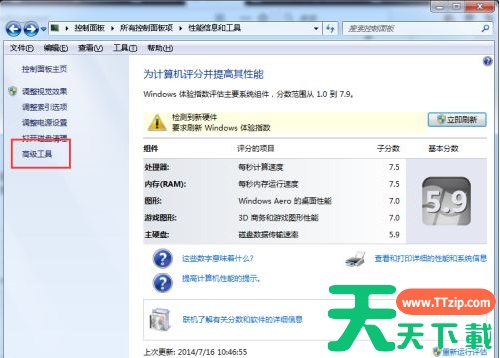 3、接着在性能信息和工具页面上方的位置找到“高级工具”打开。
