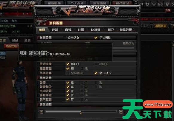 7、进入游戏后,在设置中将全屏改为16bit,然后屏幕亮度调整为32即可在游戏中透过烟雾看到敌人。