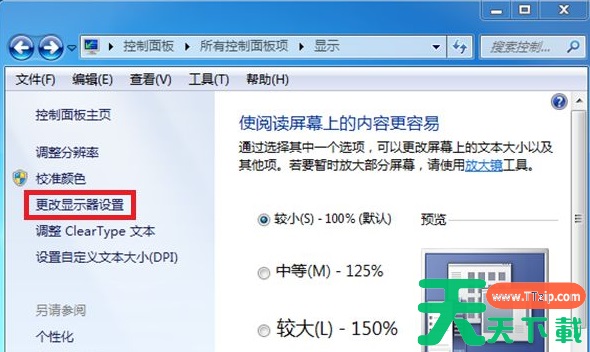 2、进入到显示器界面后在左侧菜单中找到并点击打开【更改显示器设置】。
