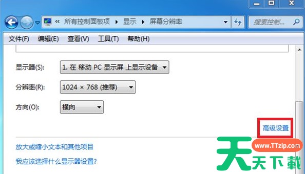3、接下来会进入到屏幕分辨率界面,在这里找到【高级设置】选项并打开。