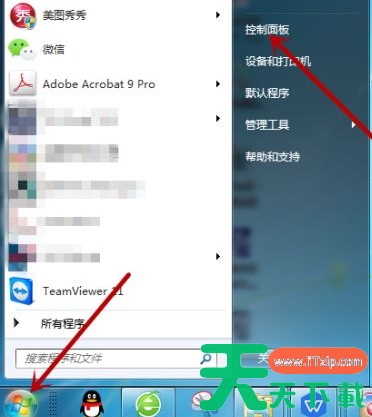 1、在电脑左下角点击【开始】图标,然后点击打开【控制面板】。