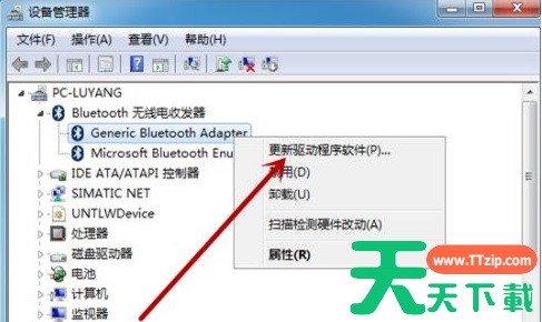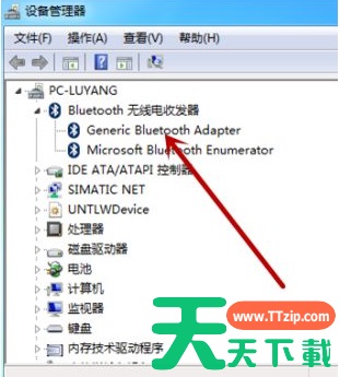 3、在设备管理器中点击【Bluetooth无线收发器】,然后鼠标右击下方的【Generic Bluetooth Adapter】。