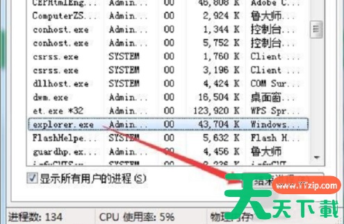 3、然后在“任务管理器”的“进程”中选择“explorer.exe”并点击右下角的“结束进程”。