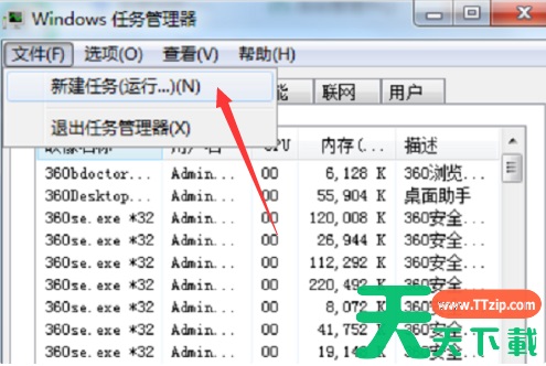 4、然后,“任务管理器”中找到“文件”点击“新建任务”。