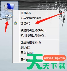 1、在桌面计算机图标鼠标右击并选择管理;