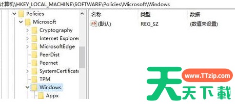 2、进入Windows系统注册表编辑器后在左边栏中依次定位到HKEY_LOCAL_MACHINE\SOFTWARE\Policies\Microsoft\Windows。