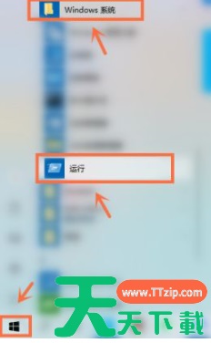 我们点击桌面【Windows】图标,打开【Windows系统】下的【运行】或者按下键盘【win+r】键。