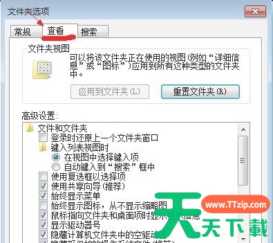 3、在弹出的窗口里点击切换到“查看”选项卡。