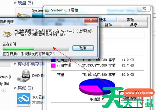 2、整理磁盘首先我们要先清理一下C盘,把C盘产生的垃圾清理掉。在属性的界面会看到在磁盘属性图片下方有一个清理磁盘,单击,等待一会弹出一个窗口。