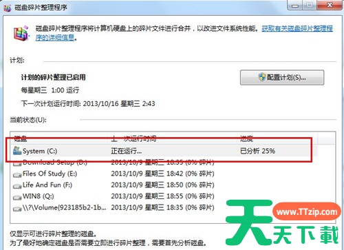 5、碎片整理,首先分析你的磁盘,主要是C盘和你软件安装所在的盘。