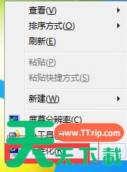 1、首先我们右键点击桌面空白处,选择‘个性化”设置。
