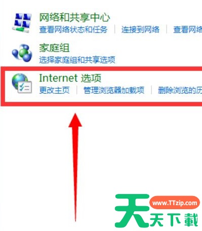 3、进入网络和internet之后找到“internet选项”并点击。
