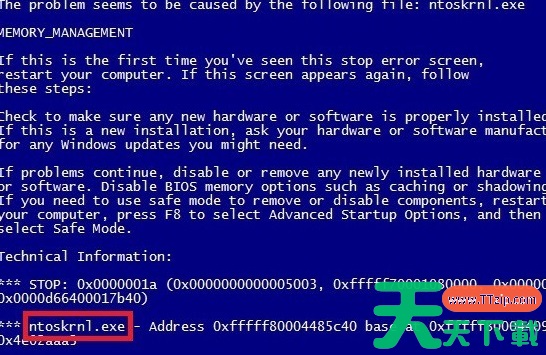 从蓝屏代码后面的而数字可以看出,这是内存管理错误,它往往是有硬件引起的。