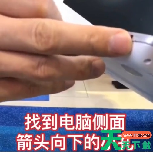1、大部分笔记本电脑一般都有恢复系统默认快捷键,本篇文章中提供的联想笔记本示例,在笔记本左侧有个小孔,使用别针在关机状态下插入按住不放,一会儿电脑会自动开机。